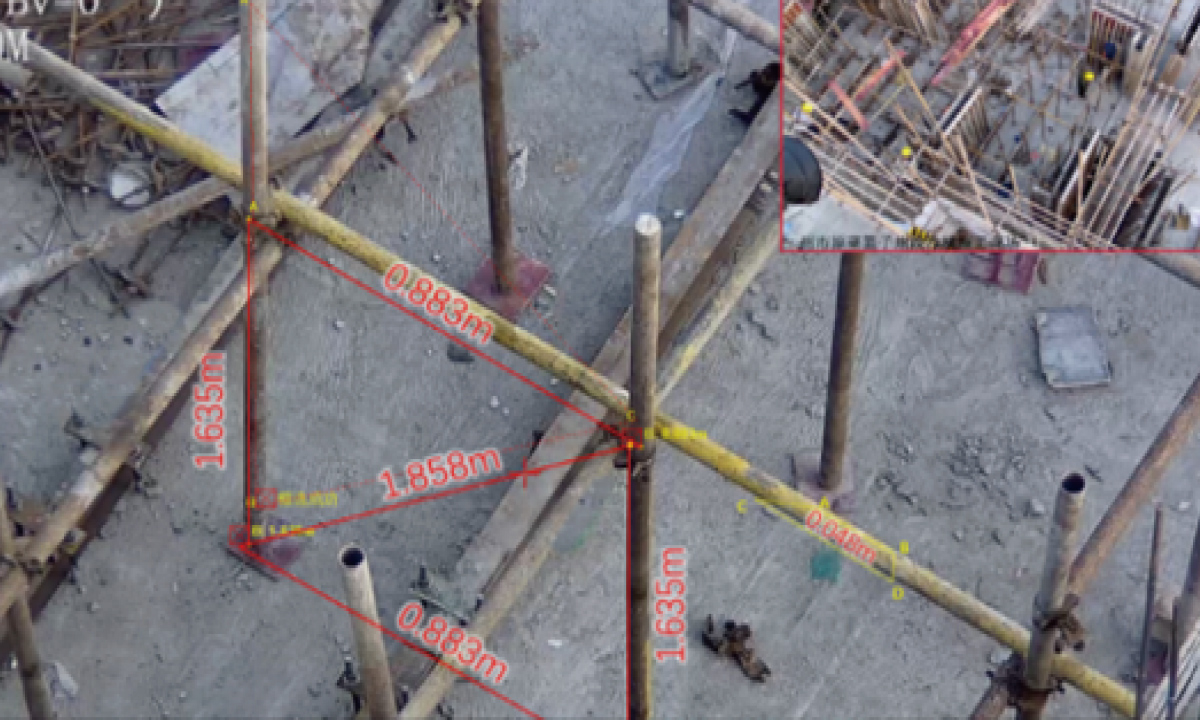 全景遠(yuǎn)程鋼筋成像在工程現(xiàn)場采用全景成像測距攝像機(jī),通過激光、高精密云臺協(xié)同完成對焦和聚焦,實現(xiàn)在3~50米范圍內(nèi),對施工作業(yè)面的鋼筋間距、直徑等數(shù)據(jù)測量,精度可達(dá)土1毫米,并利用三維坐標(biāo)自動跟蹤C(jī)AD圖技術(shù),將測量數(shù)據(jù)與設(shè)計值進(jìn)行比對,測量結(jié)果實時存儲到云平臺,可以溯源,防止偷工減料。