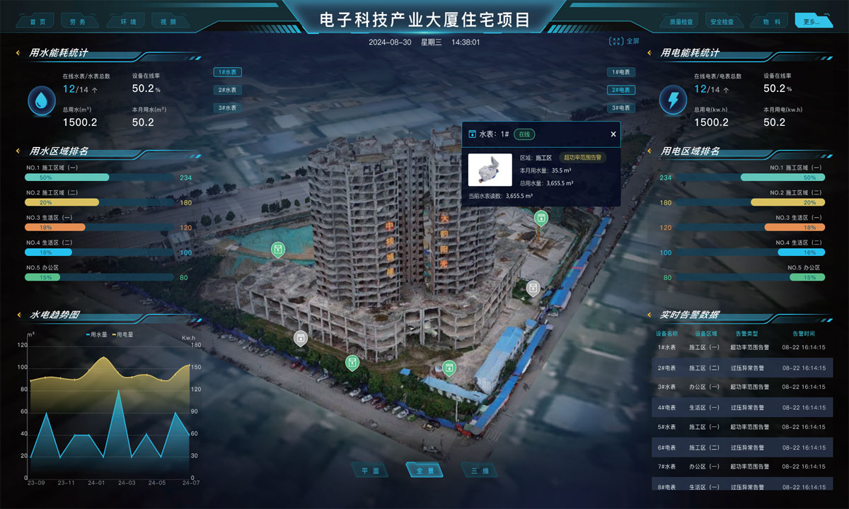智能水表/電表按1 h(最快5 s)頻率自動(dòng)抄表,遠(yuǎn)程統(tǒng)計(jì)生活區(qū)、塔吊、加工區(qū)等子項(xiàng)能耗,數(shù)據(jù)曲線實(shí)時(shí)可視。 -