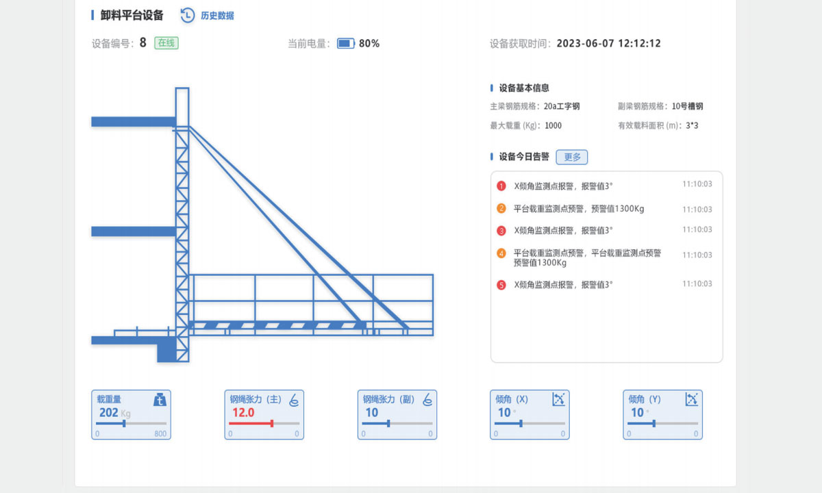 實時攔截超載、傾斜、超員三大風險,現(xiàn)場卸料平臺事故率下降90%,實現(xiàn)"零墜落、零傾覆"。